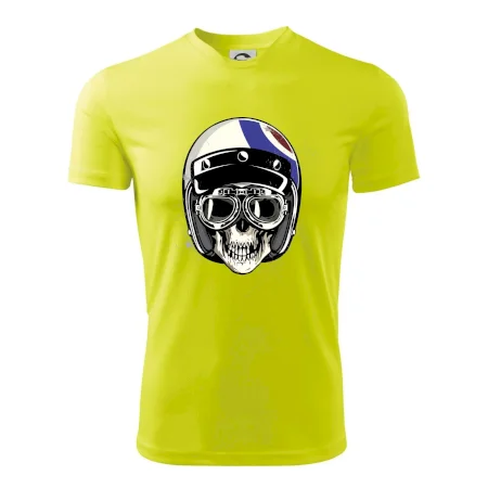 Tričko pre motorkára, na ktorom je lebka s helmou, je skvelý darček pre motorkára. Motorkárska helma ochráni lebku kostlivca aj tú Tvoju. Každý motorkár bude mať toto tričko s lebkou rád. Moto lebka na Tvojom tričko ukáže , že si motorkár až na kosť.