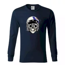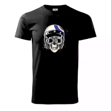 Tričko pre motorkára, na ktorom je lebka s helmou, je skvelý darček pre motorkára. Motorkárska helma ochráni lebku kostlivca aj tú Tvoju. Každý motorkár bude mať toto tričko s lebkou rád. Moto lebka na Tvojom tričko ukáže , že si motorkár až na kosť.