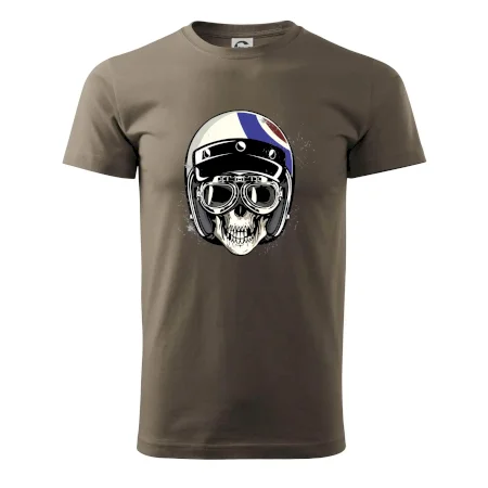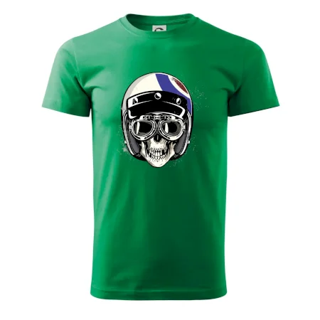 Tričko pre motorkára, na ktorom je lebka s helmou, je skvelý darček pre motorkára. Motorkárska helma ochráni lebku kostlivca aj tú Tvoju. Každý motorkár bude mať toto tričko s lebkou rád. Moto lebka na Tvojom tričko ukáže , že si motorkár až na kosť.