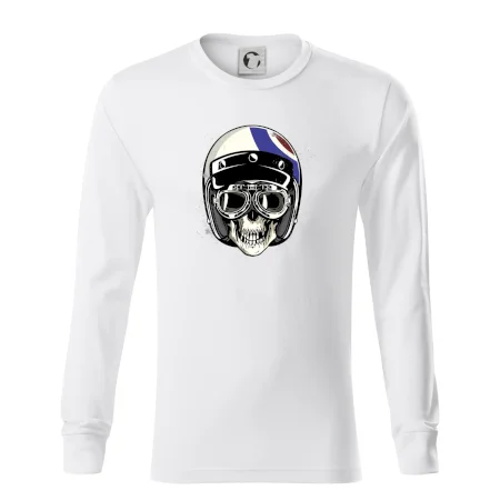 Tričko pre motorkára, na ktorom je lebka s helmou, je skvelý darček pre motorkára. Motorkárska helma ochráni lebku kostlivca aj tú Tvoju. Každý motorkár bude mať toto tričko s lebkou rád. Moto lebka na Tvojom tričko ukáže , že si motorkár až na kosť.