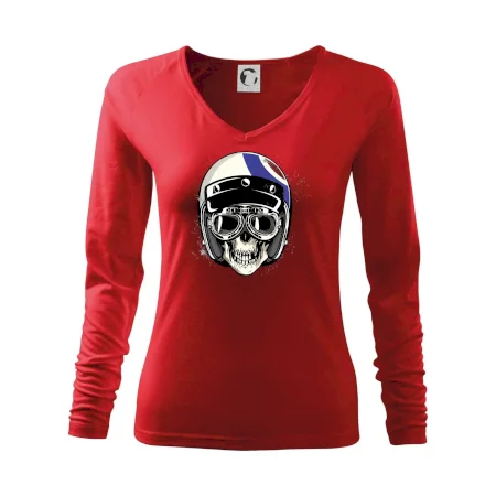 Tričko pre motorkára, na ktorom je lebka s helmou, je skvelý darček pre motorkára. Motorkárska helma ochráni lebku kostlivca aj tú Tvoju. Každý motorkár bude mať toto tričko s lebkou rád. Moto lebka na Tvojom tričko ukáže , že si motorkár až na kosť.