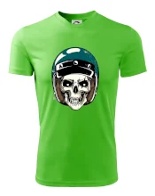 Tričko pre motorkára, na ktorom je lebka s helmou, je skvelý darček pre motorkára. Motorkárska helma ochráni lebku kostlivca aj tú Tvoju. Každý motorkár bude mať toto tričko s lebkou rád. Moto lebka na Tvojom tričko ukáže , že si motorkár až na kosť.