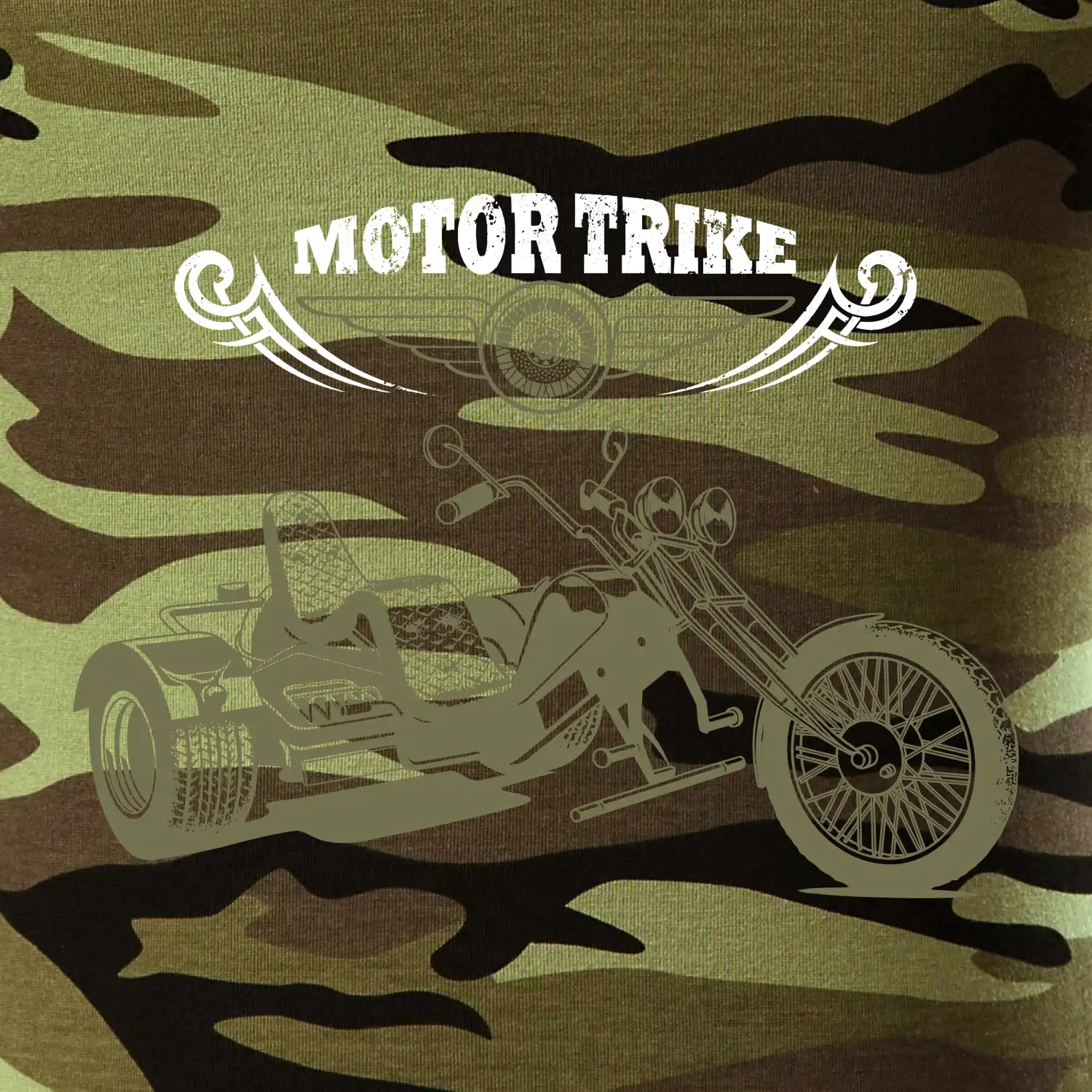 Tričko pre motorkára, na ktorom je motorkárska trojkolka moto trike. Moto trojkolka by nemala chýbať na tričku žiadnemu motorkárovi. Moto tričko s trojkolkou by chcel každý motorkár. Moto tričko s trojkolkou je vhodný darček pre motorkárov.