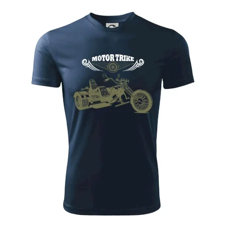 Tričko pre motorkára, na ktorom je motorkárska trojkolka moto trike. Moto trojkolka by nemala chýbať na tričku žiadnemu motorkárovi. Moto tričko s trojkolkou by chcel každý motorkár. Moto tričko s trojkolkou je vhodný darček pre motorkárov.