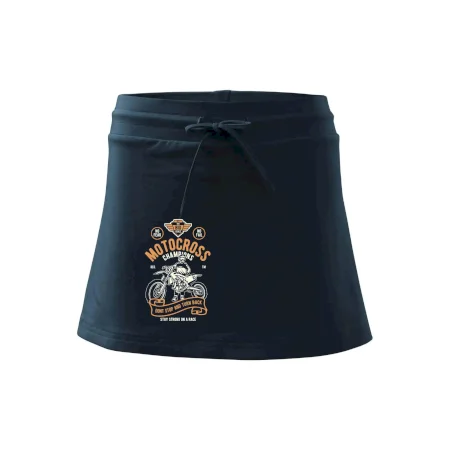 Dámska kraťasová sukňa MALFINI Two in One 604 je perfektnou kombináciou sukne a šortiek, ideálna na šport, voľný čas alebo ležérne nosenie. Vďaka prídavku elastanu si sukňa zachováva tvar a ponúka pohodlie pri pohybe. Krátky strih do tvaru „A“ a široký elastický pás so sťahovacou šnúrkou zabezpečujú voľnosť a prispôsobenie.