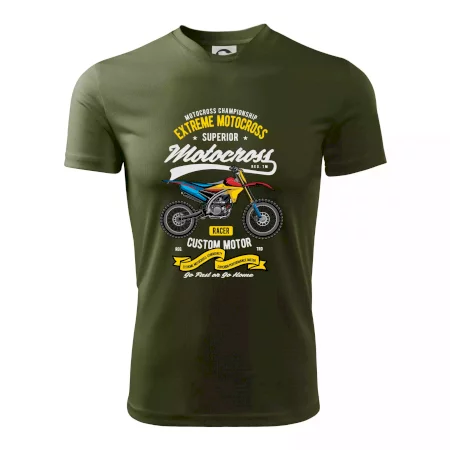 Tričko pre motorkára, na ktorom je motorka. Motorkárske tričko, kde je motokrosová motorka, musí mať doma každý vášnivý motorkár. Tričko s motorkou je vhodný darček pre motorkára.