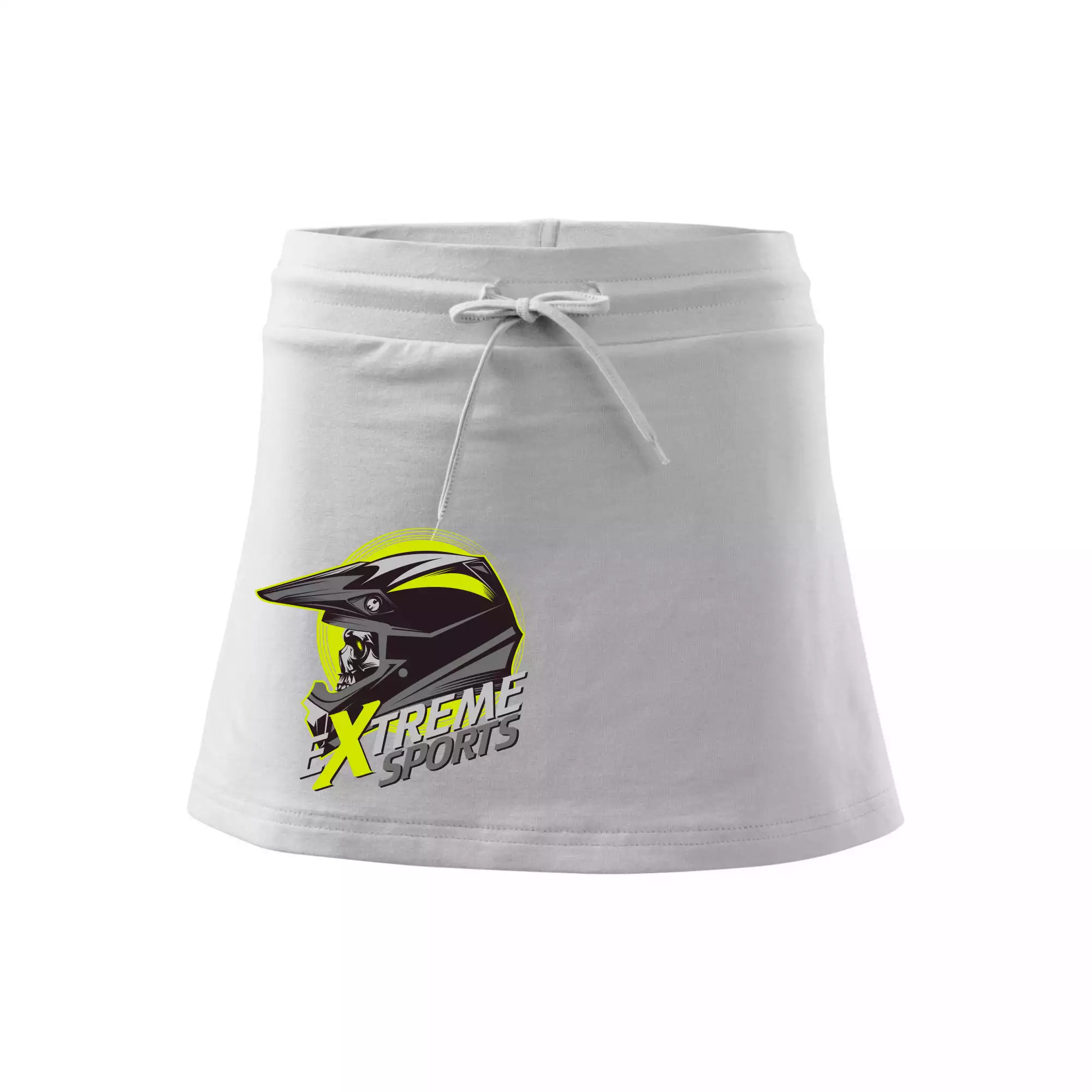 Dámska kraťasová sukňa MALFINI Two in One 604 je perfektnou kombináciou sukne a šortiek, ideálna na šport, voľný čas alebo ležérne nosenie. Vďaka prídavku elastanu si sukňa zachováva tvar a ponúka pohodlie pri pohybe. Krátky strih do tvaru „A“ a široký elastický pás so sťahovacou šnúrkou zabezpečujú voľnosť a prispôsobenie.