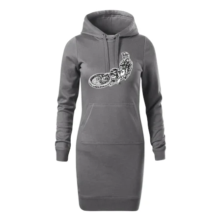 Dámske mikinové šaty MALFINI Snap 419 sú ideálnou voľbou pre ženy, ktoré hľadajú pohodlný a štýlový kúsok na voľný čas alebo každodenné nosenie. Ľahko vypasovaný strih s bočnými švami podčiarkuje ženskú siluetu, zatiaľ čo kapucňa s podšívkou a sťahovacou šnúrkou dodáva ležérny vzhľad. Šaty majú dĺžku nad kolená a sú vybavené našitým vreckom v štýle „klokanky“. Materiál je mäkký a príjemný na dotyk grâce à smesi bavlny a polyesteru s nepočesanou vnútornou stranou.