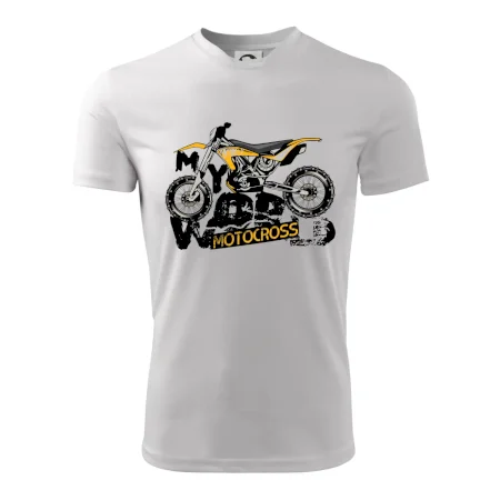 Tričko pre motorkára, na ktorom je motorka. Motorkárske tričko, kde je motokrosová motorka, musí mať doma každý vášnivý motorkár. Tričko s motorkou je vhodný darček pre motorkára.