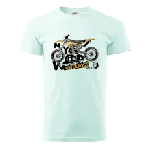 Tričko pre motorkára, na ktorom je motorka. Motorkárske tričko, kde je motokrosová motorka, musí mať doma každý vášnivý motorkár. Tričko s motorkou je vhodný darček pre motorkára.