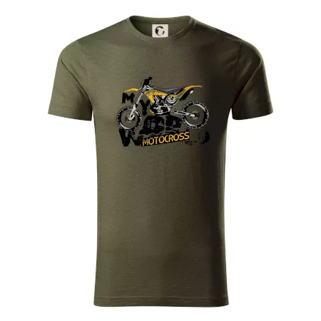 Tričko pre motorkára, na ktorom je motorka. Motorkárske tričko, kde je motokrosová motorka, musí mať doma každý vášnivý motorkár. Tričko s motorkou je vhodný darček pre motorkára.