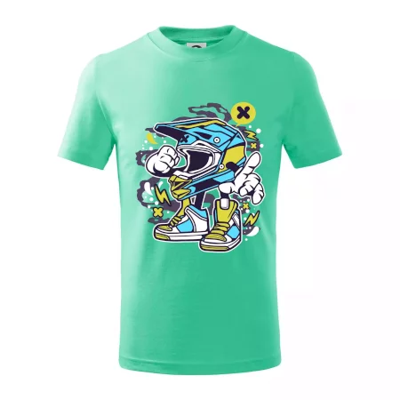 Detské tričko strednej gramáže s bočnými švami. Úzky priekrčník s prídavkom 5% elastanu. Vnútorná časť zadného priekrčníka začistená tkanou páskou. Spevnený ramenný šev.