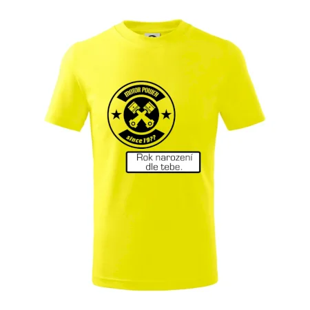 Detské tričko strednej gramáže s bočnými švami. Úzky priekrčník s prídavkom 5% elastanu. Vnútorná časť zadného priekrčníka začistená tkanou páskou. Spevnený ramenný šev.