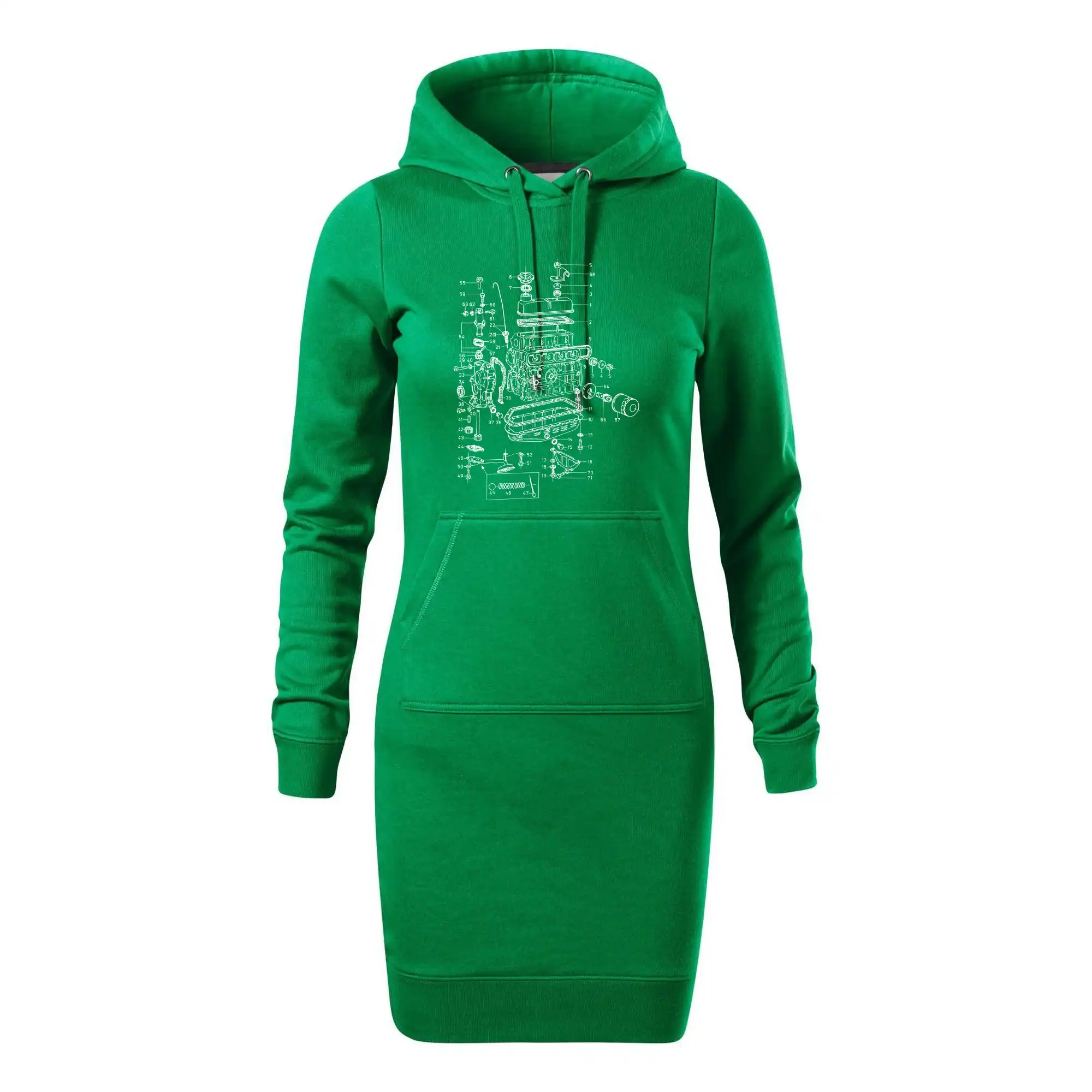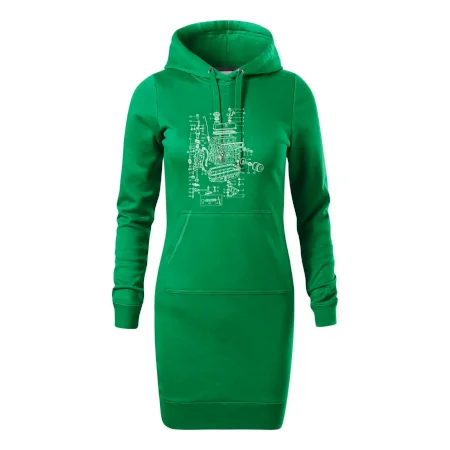 Dámske mikinové šaty MALFINI Snap 419 sú ideálnou voľbou pre ženy, ktoré hľadajú pohodlný a štýlový kúsok na voľný čas alebo každodenné nosenie. Ľahko vypasovaný strih s bočnými švami podčiarkuje ženskú siluetu, zatiaľ čo kapucňa s podšívkou a sťahovacou šnúrkou dodáva ležérny vzhľad. Šaty majú dĺžku nad kolená a sú vybavené našitým vreckom v štýle „klokanky“. Materiál je mäkký a príjemný na dotyk grâce à smesi bavlny a polyesteru s nepočesanou vnútornou stranou.