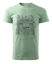 Pánske tričko s krátkym rukávom vyššej gramáže. Módne, priliehavý strih s bočnými švami. Úzky lem priekrčníka z rebrového úpletu s prídavkom 5% elastanu. Vnútorná časť zadného priekrčníku začistená páskou. Spevnený ramenný šev.