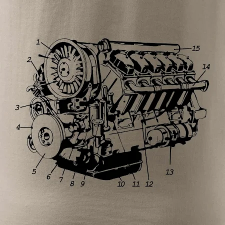 Konštrukcia motora: 4-taktný vznetový vidlicový 12 valec s uhlom zovretia 75°