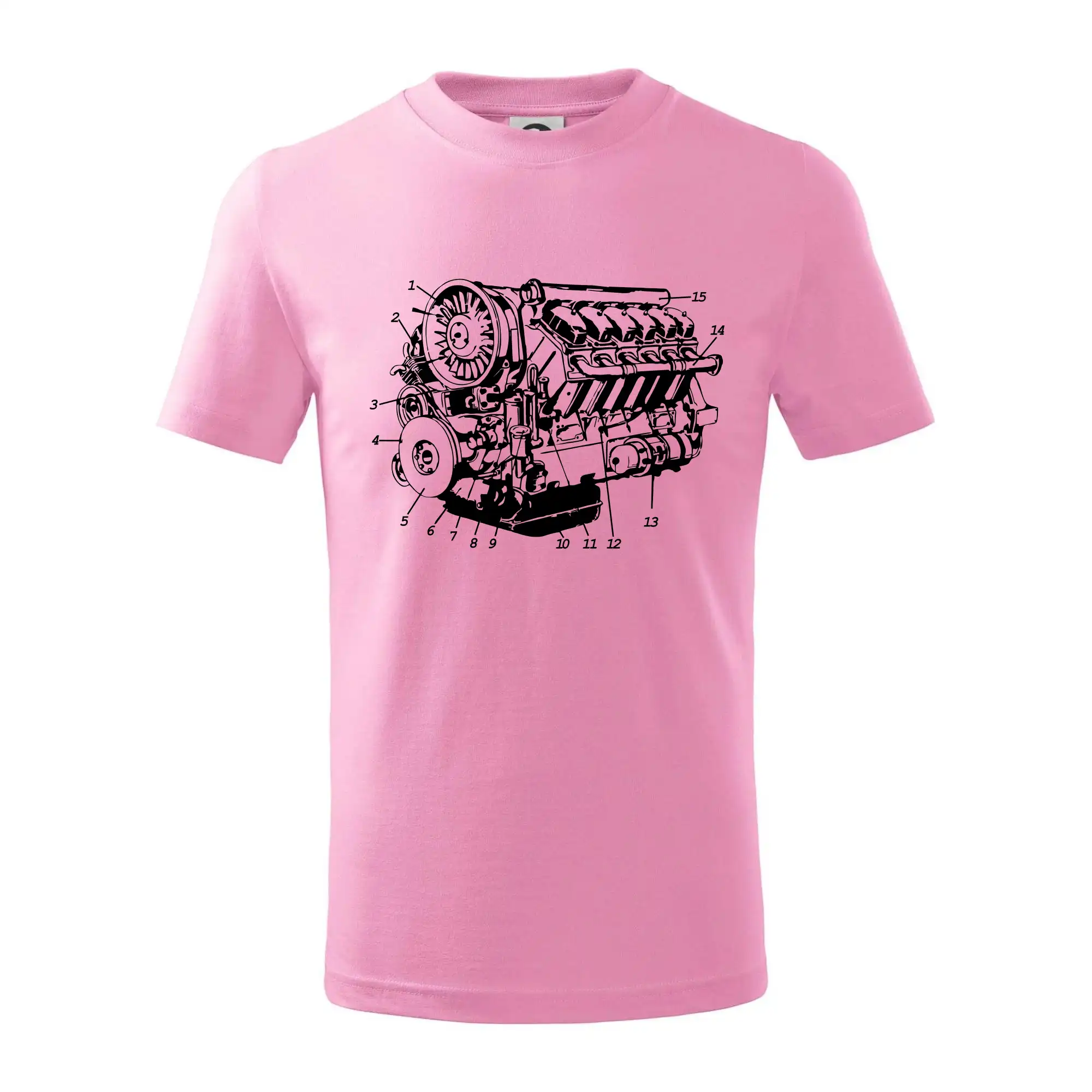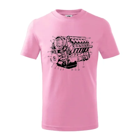 Detské tričko strednej gramáže s bočnými švami. Úzky priekrčník s prídavkom 5% elastanu. Vnútorná časť zadného priekrčníka začistená tkanou páskou. Spevnený ramenný šev.