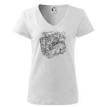 Dámske tričko s ľahko priliehavým strihom, ktorý pôsobí elegantne a skvele padne. Tento typ trička má kratšie rukávy a hlbší výstrih zakončený jemným lemovaním.
