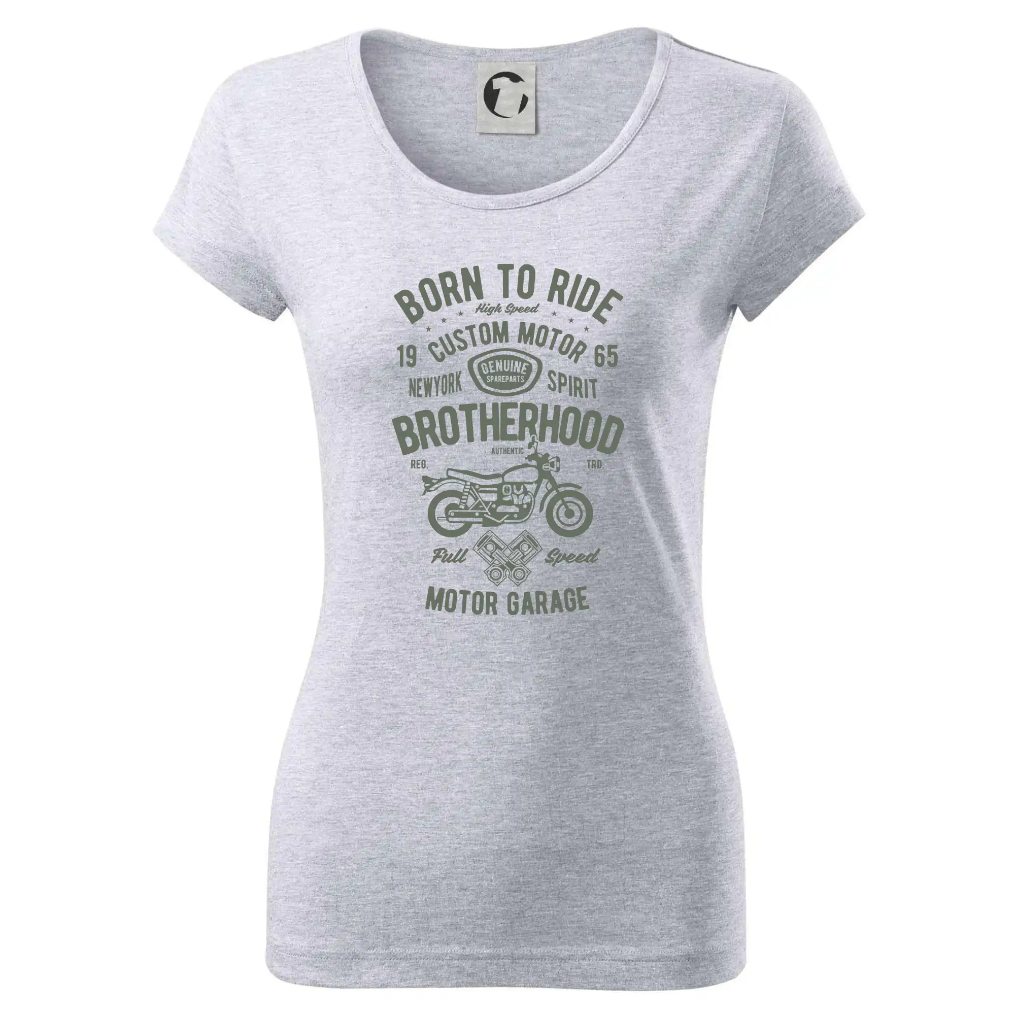 Dámske tričko s ľahko priliehavým strihom, ktorý pôsobí elegantne a skvele padne. Tento typ trička má kratšie rukávy a hlbší výstrih zakončený jemným lemovaním.