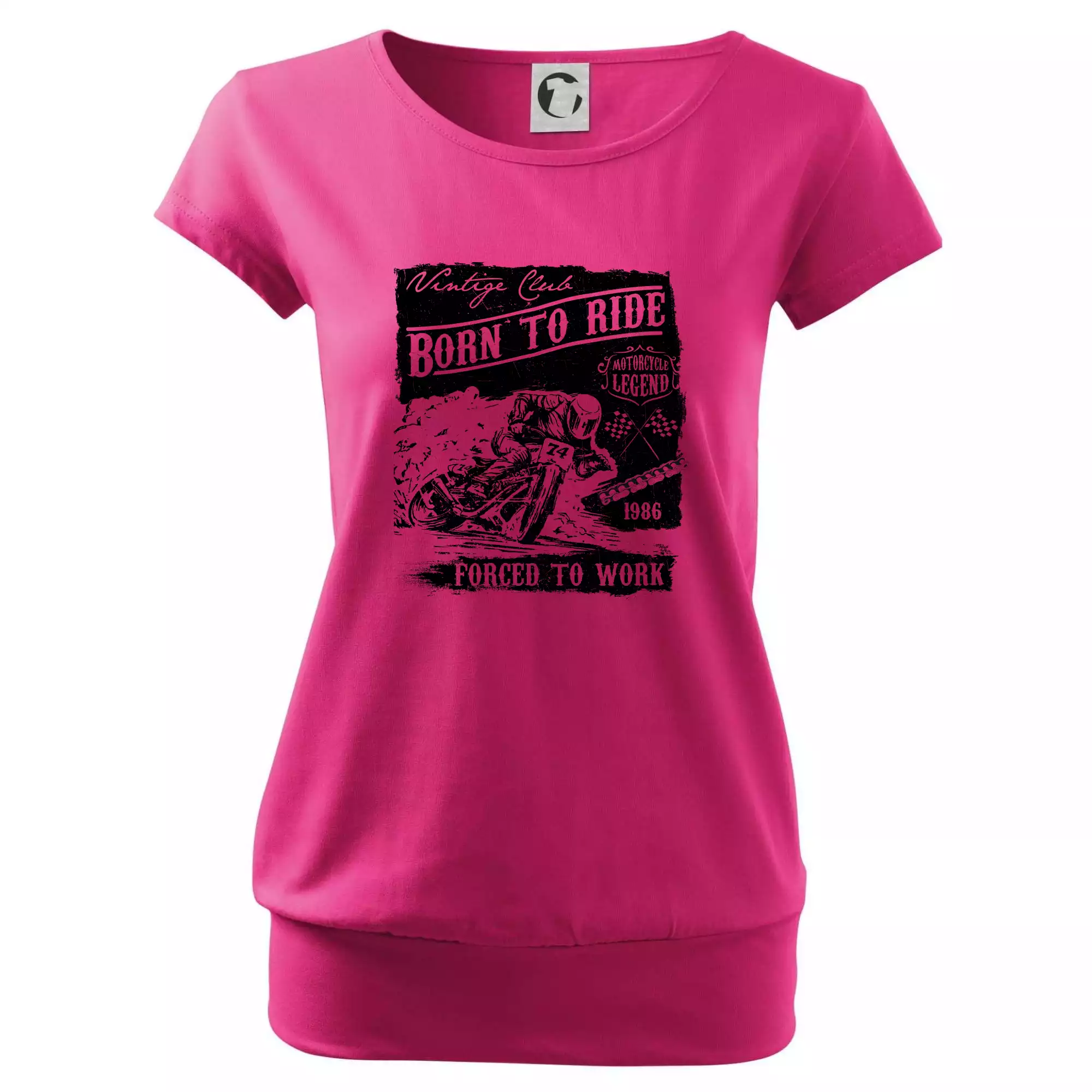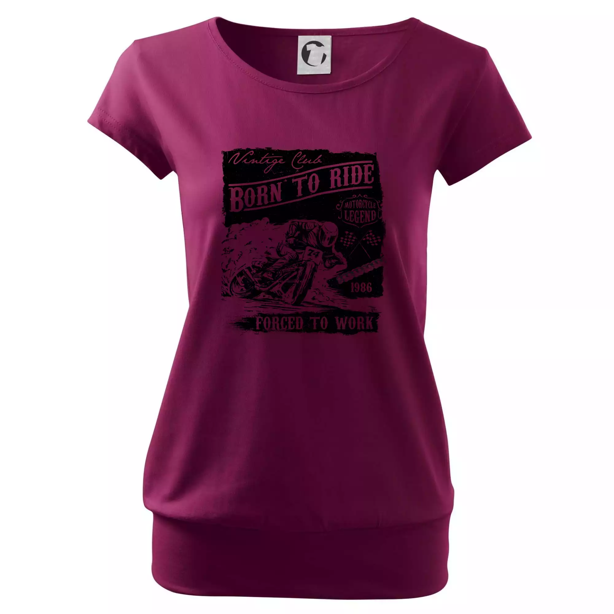 Trendové dámske tričko s veľmi krátkym rukávom, voľnejšieho strihu, v dolnom kraji všité do širokého lemu. Okrúhly priekrčník s úzkym lemom zo zhodného materiálu.