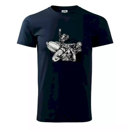 Tričko pre motorkára, na ktorom je motorkár kostlivec na motorke. Sajdkára pri motorke je skvelá možnosť ako sa môže pri Tvojom pekelnom stroji objaviť aj krásne dievča stopárka. Motorka je životný štýl, tak to ukáž tým, že si kúpiš tričko s motorkou. Pokiaľ si pravý motorkár máš rád rýchlosť, motorka so sajdkárou je motív ideálny pre Teba.