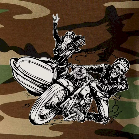 Tričko pre motorkára, na ktorom je motorkár kostlivec na motorke. Sajdkára pri motorke je skvelá možnosť ako sa môže pri Tvojom pekelnom stroji objaviť aj krásne dievča stopárka. Motorka je životný štýl, tak to ukáž tým, že si kúpiš tričko s motorkou. Pokiaľ si pravý motorkár máš rád rýchlosť, motorka so sajdkárou je motív ideálny pre Teba.