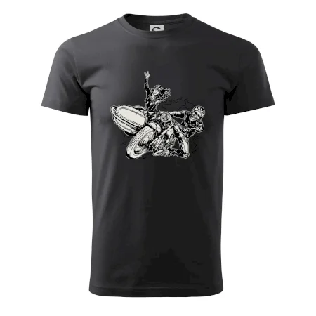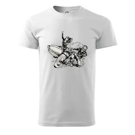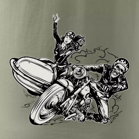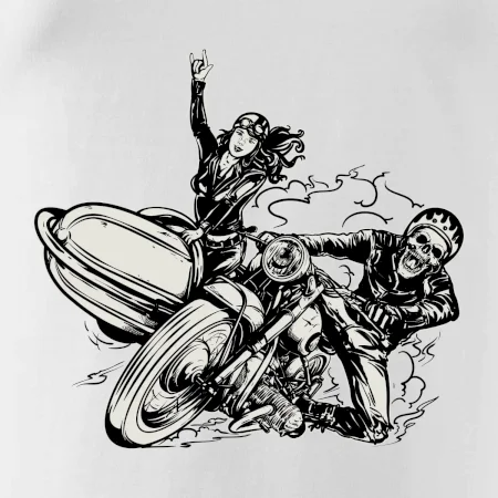Tričko pre motorkára, na ktorom je motorkár kostlivec na motorke. Sajdkára pri motorke je skvelá možnosť ako sa môže pri Tvojom pekelnom stroji objaviť aj krásne dievča stopárka. Motorka je životný štýl, tak to ukáž tým, že si kúpiš tričko s motorkou. Pokiaľ si pravý motorkár máš rád rýchlosť, motorka so sajdkárou je motív ideálny pre Teba.