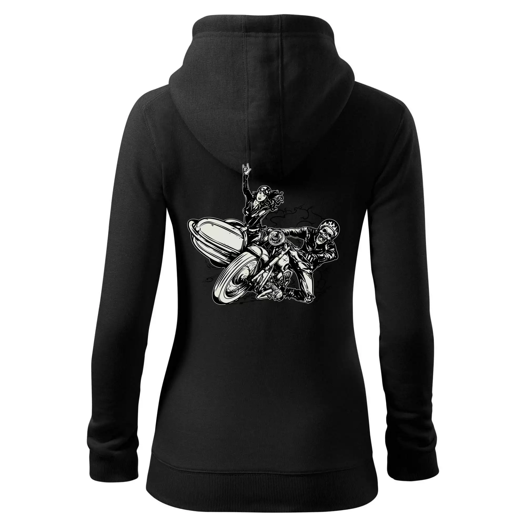 Tričko pre motorkára, na ktorom je motorkár kostlivec na motorke. Sajdkára pri motorke je skvelá možnosť ako sa môže pri Tvojom pekelnom stroji objaviť aj krásne dievča stopárka. Motorka je životný štýl, tak to ukáž tým, že si kúpiš tričko s motorkou. Pokiaľ si pravý motorkár máš rád rýchlosť, motorka so sajdkárou je motív ideálny pre Teba.