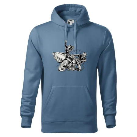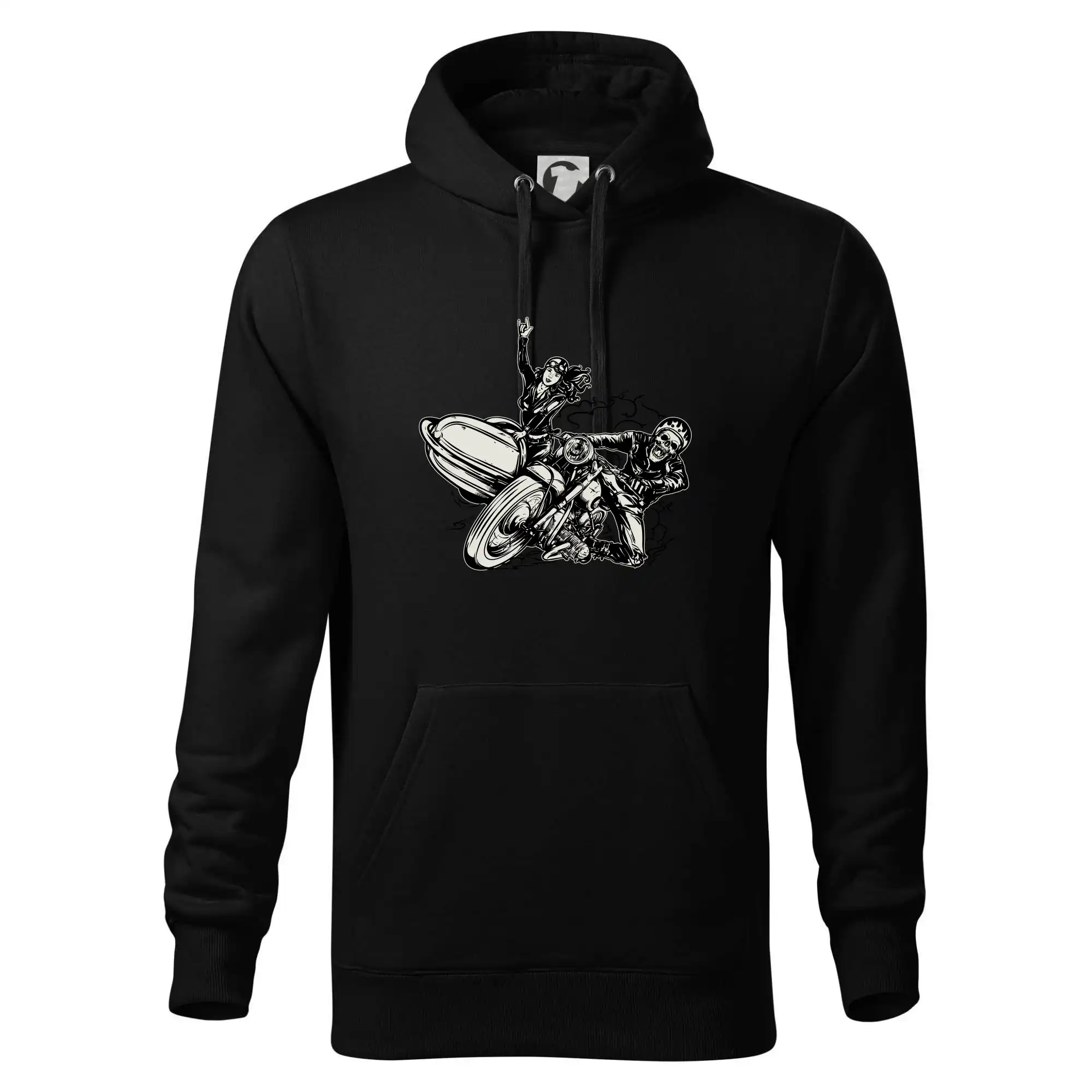 Tričko pre motorkára, na ktorom je motorkár kostlivec na motorke. Sajdkára pri motorke je skvelá možnosť ako sa môže pri Tvojom pekelnom stroji objaviť aj krásne dievča stopárka. Motorka je životný štýl, tak to ukáž tým, že si kúpiš tričko s motorkou. Pokiaľ si pravý motorkár máš rád rýchlosť, motorka so sajdkárou je motív ideálny pre Teba.
