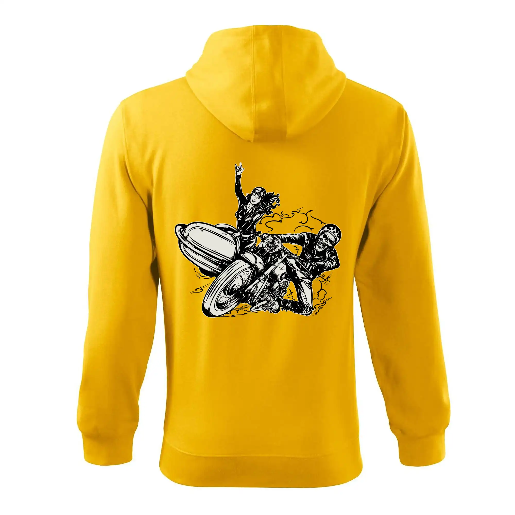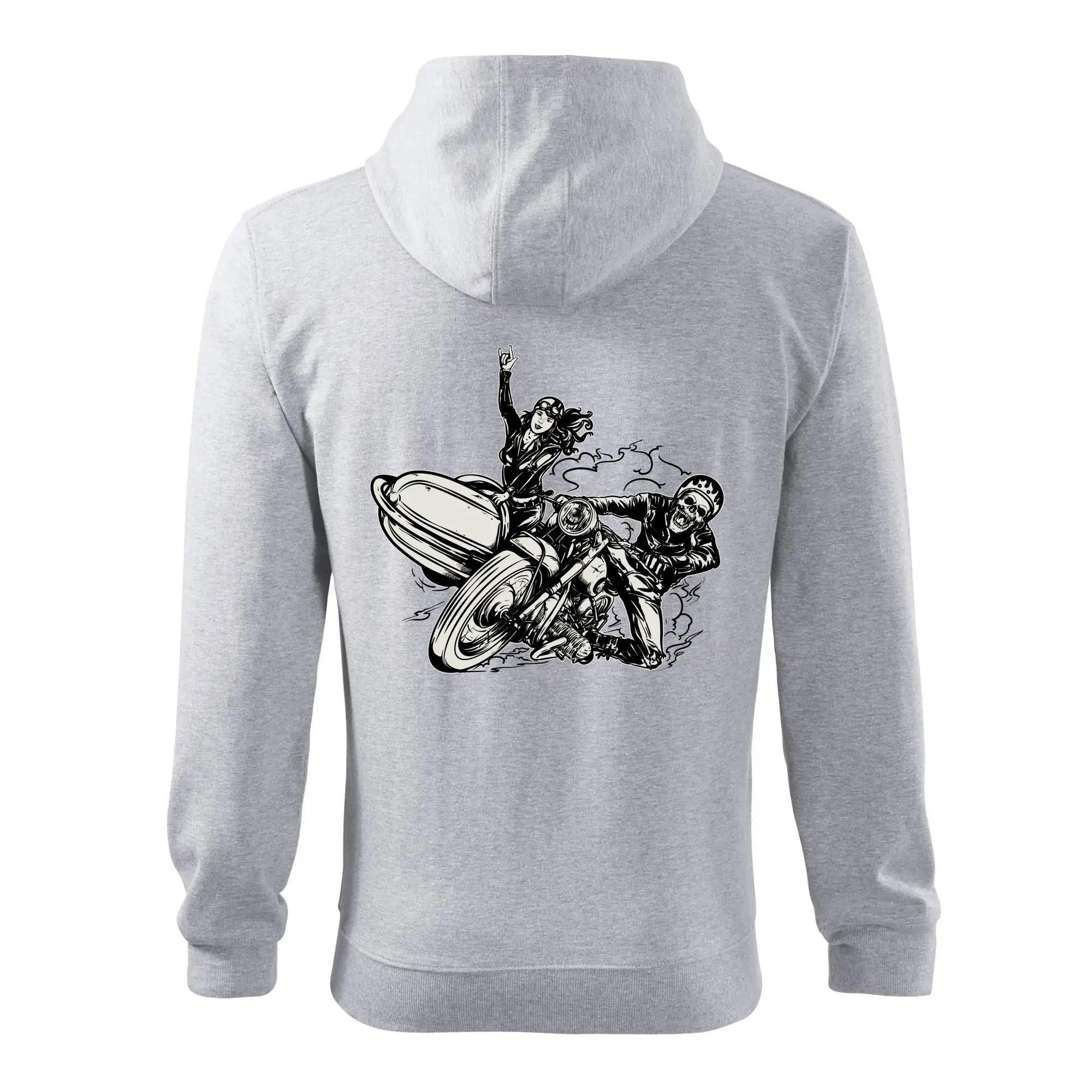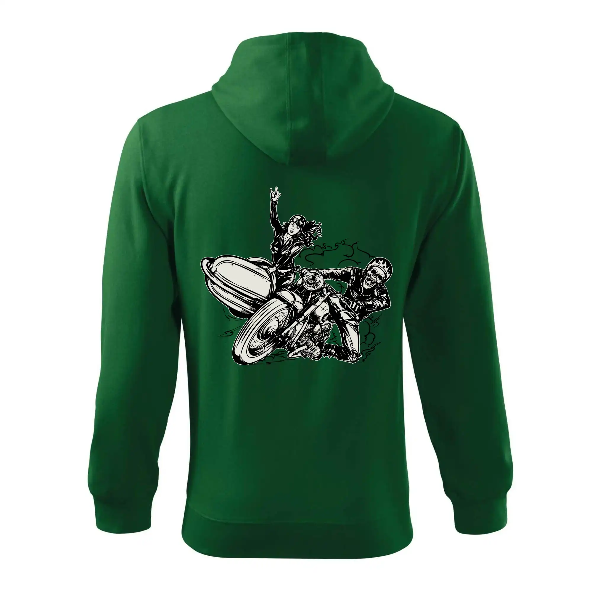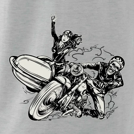 Tričko pre motorkára, na ktorom je motorkár kostlivec na motorke. Sajdkára pri motorke je skvelá možnosť ako sa môže pri Tvojom pekelnom stroji objaviť aj krásne dievča stopárka. Motorka je životný štýl, tak to ukáž tým, že si kúpiš tričko s motorkou. Pokiaľ si pravý motorkár máš rád rýchlosť, motorka so sajdkárou je motív ideálny pre Teba.