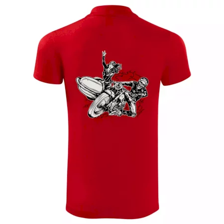 Tričko pre motorkára, na ktorom je motorkár kostlivec na motorke. Sajdkára pri motorke je skvelá možnosť ako sa môže pri Tvojom pekelnom stroji objaviť aj krásne dievča stopárka. Motorka je životný štýl, tak to ukáž tým, že si kúpiš tričko s motorkou. Pokiaľ si pravý motorkár máš rád rýchlosť, motorka so sajdkárou je motív ideálny pre Teba.