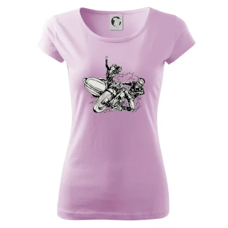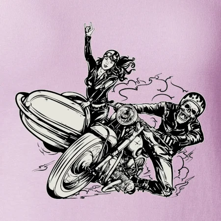 Tričko pre motorkára, na ktorom je motorkár kostlivec na motorke. Sajdkára pri motorke je skvelá možnosť ako sa môže pri Tvojom pekelnom stroji objaviť aj krásne dievča stopárka. Motorka je životný štýl, tak to ukáž tým, že si kúpiš tričko s motorkou. Pokiaľ si pravý motorkár máš rád rýchlosť, motorka so sajdkárou je motív ideálny pre Teba.