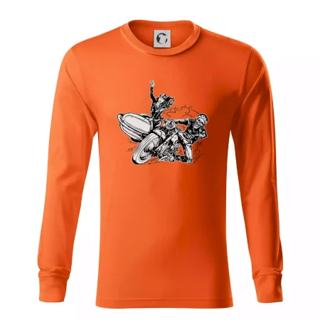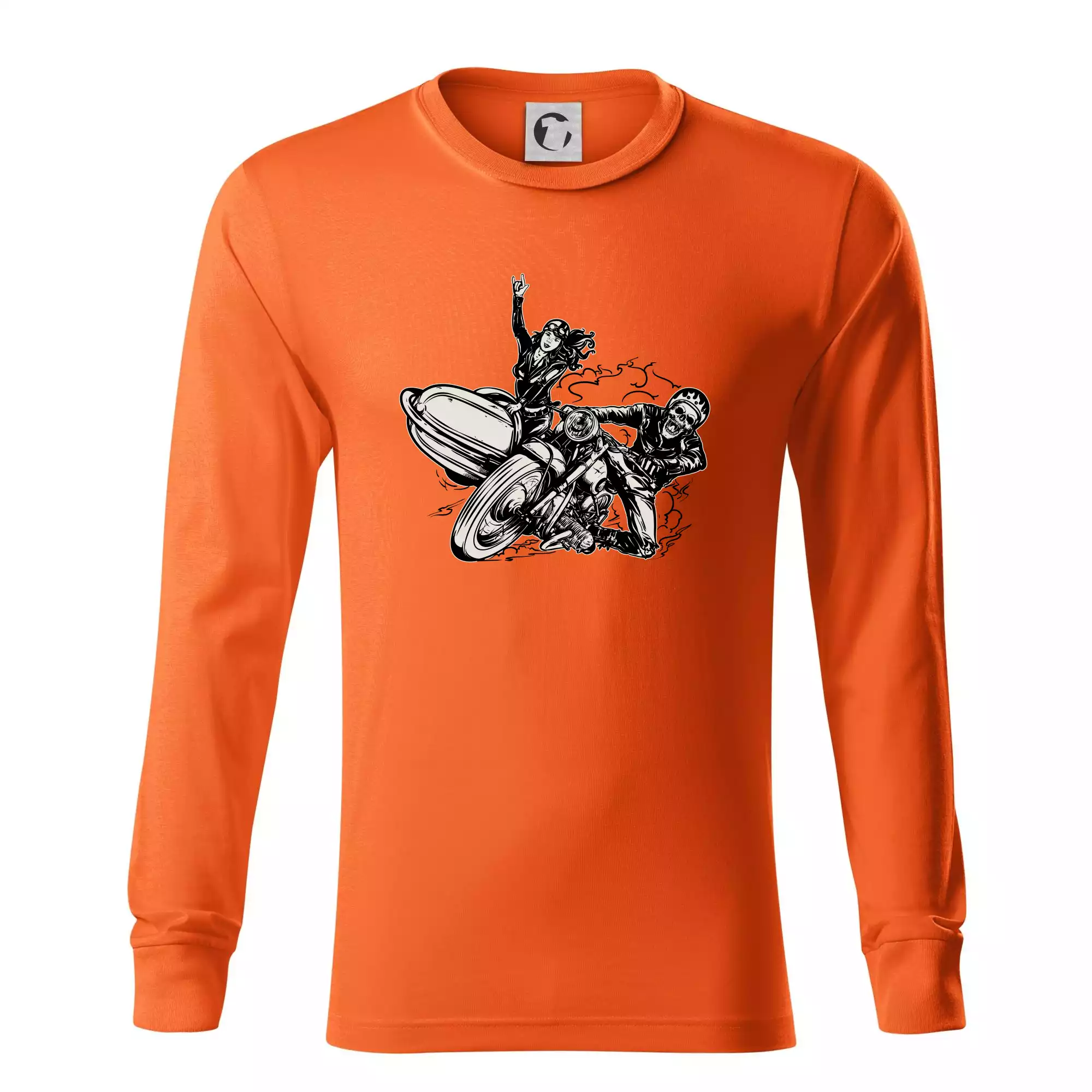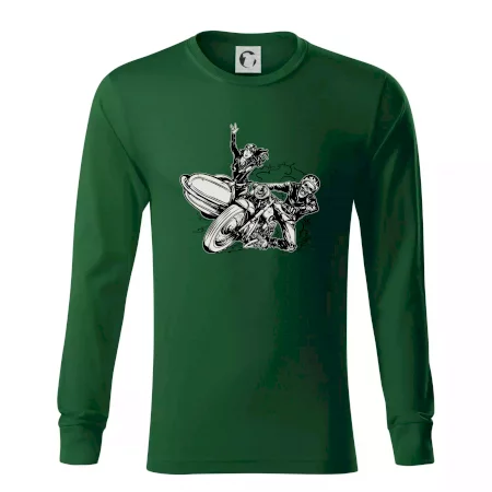 Tričko pre motorkára, na ktorom je motorkár kostlivec na motorke. Sajdkára pri motorke je skvelá možnosť ako sa môže pri Tvojom pekelnom stroji objaviť aj krásne dievča stopárka. Motorka je životný štýl, tak to ukáž tým, že si kúpiš tričko s motorkou. Pokiaľ si pravý motorkár máš rád rýchlosť, motorka so sajdkárou je motív ideálny pre Teba.