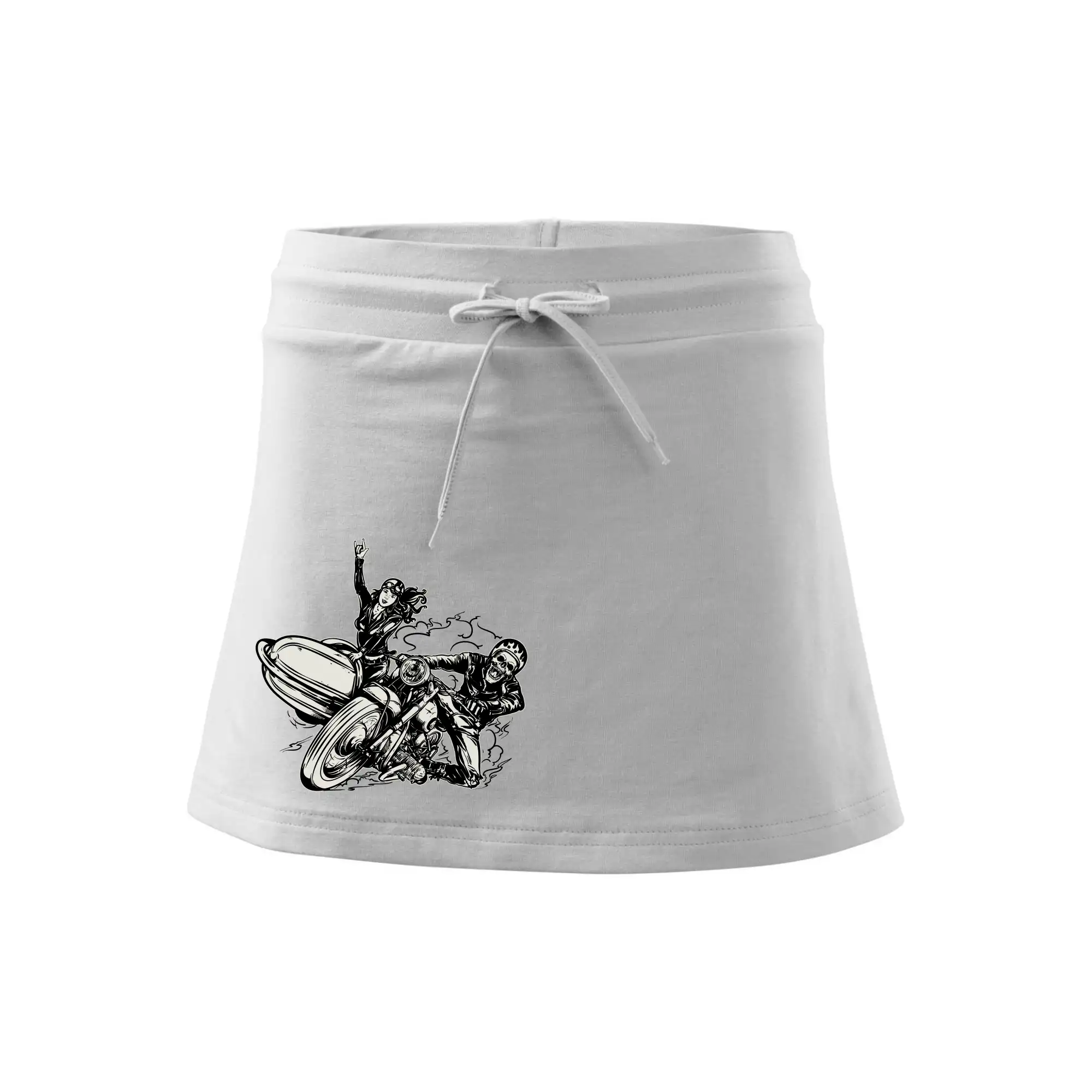 Tričko pre motorkára, na ktorom je motorkár kostlivec na motorke. Sajdkára pri motorke je skvelá možnosť ako sa môže pri Tvojom pekelnom stroji objaviť aj krásne dievča stopárka. Motorka je životný štýl, tak to ukáž tým, že si kúpiš tričko s motorkou. Pokiaľ si pravý motorkár máš rád rýchlosť, motorka so sajdkárou je motív ideálny pre Teba.