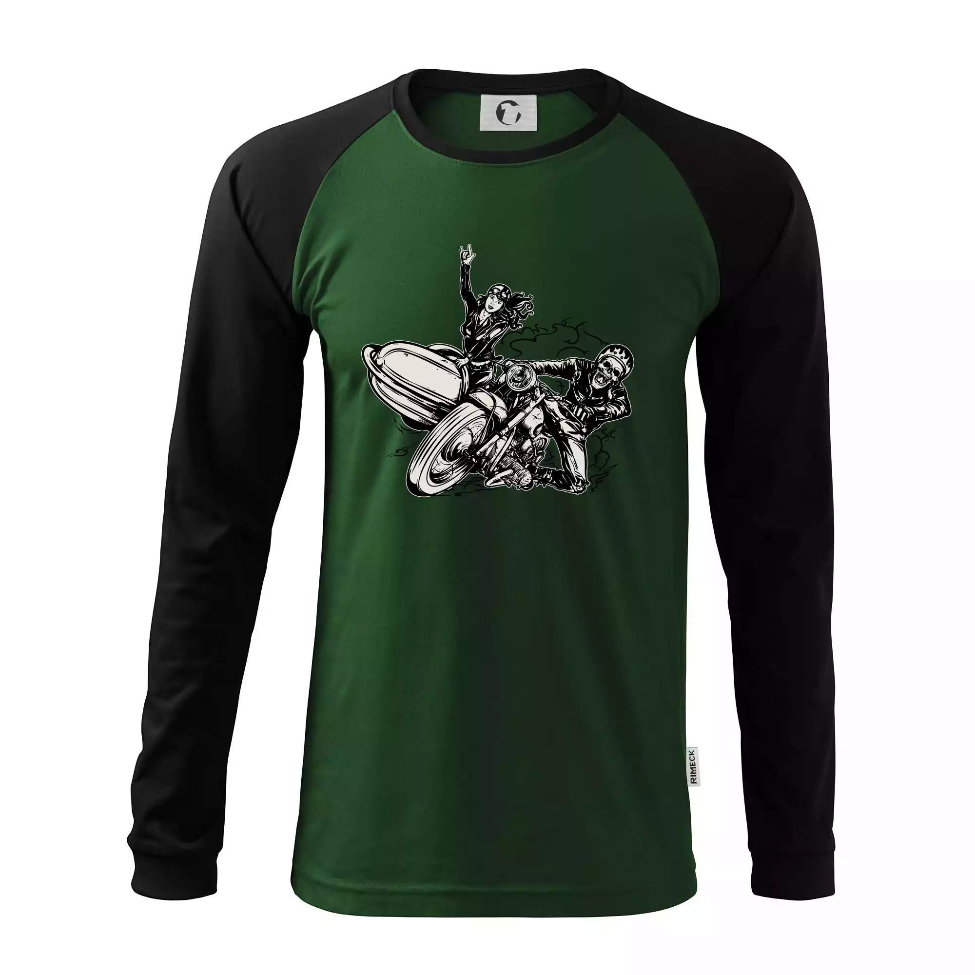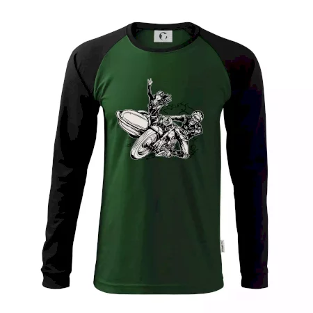 Tričko pre motorkára, na ktorom je motorkár kostlivec na motorke. Sajdkára pri motorke je skvelá možnosť ako sa môže pri Tvojom pekelnom stroji objaviť aj krásne dievča stopárka. Motorka je životný štýl, tak to ukáž tým, že si kúpiš tričko s motorkou. Pokiaľ si pravý motorkár máš rád rýchlosť, motorka so sajdkárou je motív ideálny pre Teba.