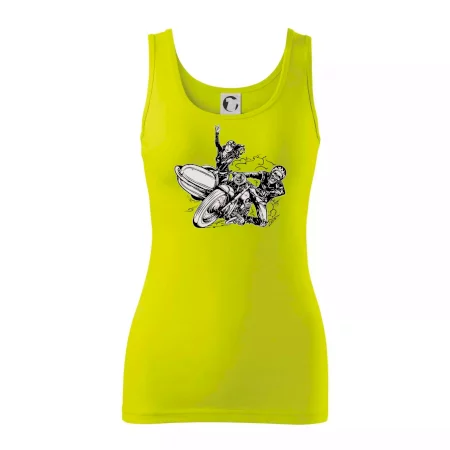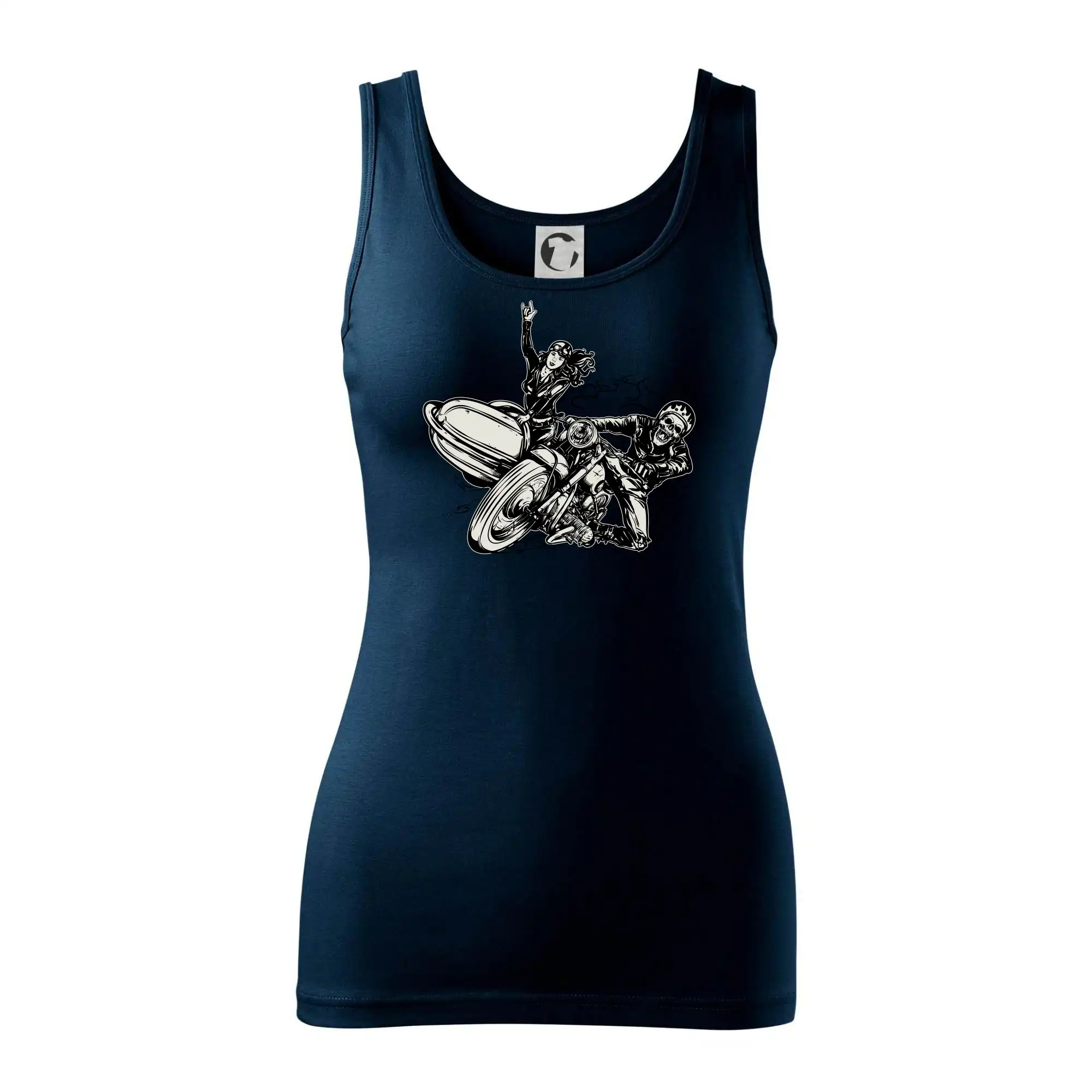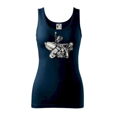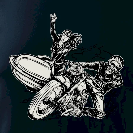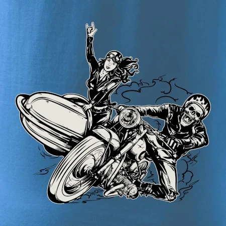 Tričko pre motorkára, na ktorom je motorkár kostlivec na motorke. Sajdkára pri motorke je skvelá možnosť ako sa môže pri Tvojom pekelnom stroji objaviť aj krásne dievča stopárka. Motorka je životný štýl, tak to ukáž tým, že si kúpiš tričko s motorkou. Pokiaľ si pravý motorkár máš rád rýchlosť, motorka so sajdkárou je motív ideálny pre Teba.