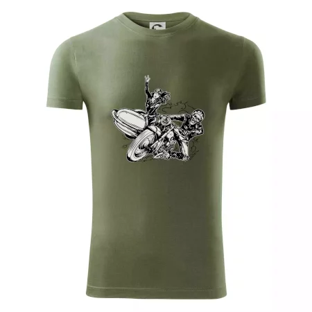 Tričko pre motorkára, na ktorom je motorkár kostlivec na motorke. Sajdkára pri motorke je skvelá možnosť ako sa môže pri Tvojom pekelnom stroji objaviť aj krásne dievča stopárka. Motorka je životný štýl, tak to ukáž tým, že si kúpiš tričko s motorkou. Pokiaľ si pravý motorkár máš rád rýchlosť, motorka so sajdkárou je motív ideálny pre Teba.