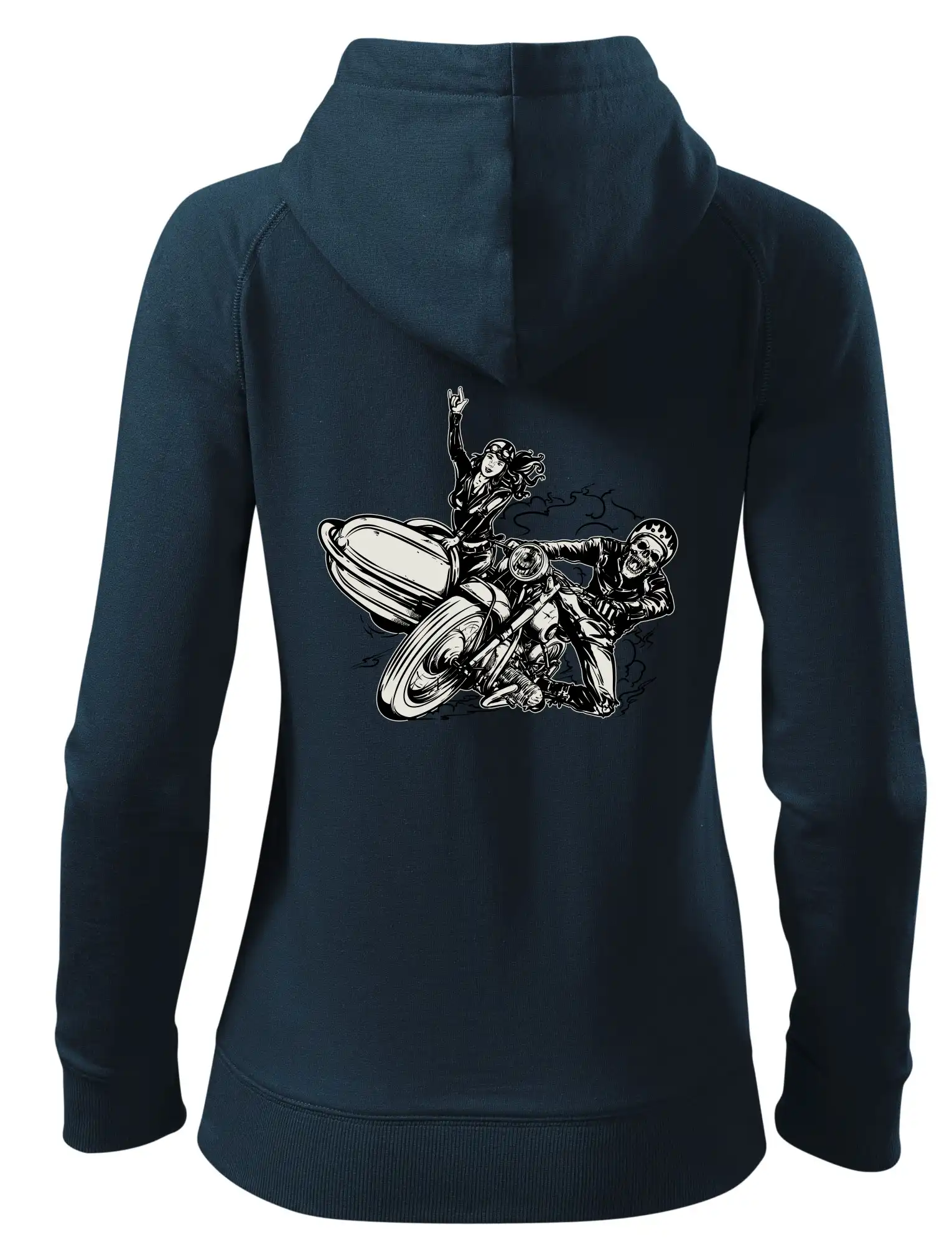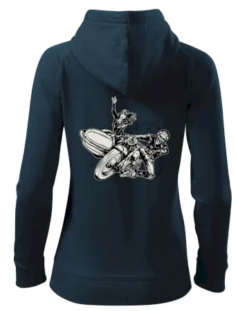 Tričko pre motorkára, na ktorom je motorkár kostlivec na motorke. Sajdkára pri motorke je skvelá možnosť ako sa môže pri Tvojom pekelnom stroji objaviť aj krásne dievča stopárka. Motorka je životný štýl, tak to ukáž tým, že si kúpiš tričko s motorkou. Pokiaľ si pravý motorkár máš rád rýchlosť, motorka so sajdkárou je motív ideálny pre Teba.