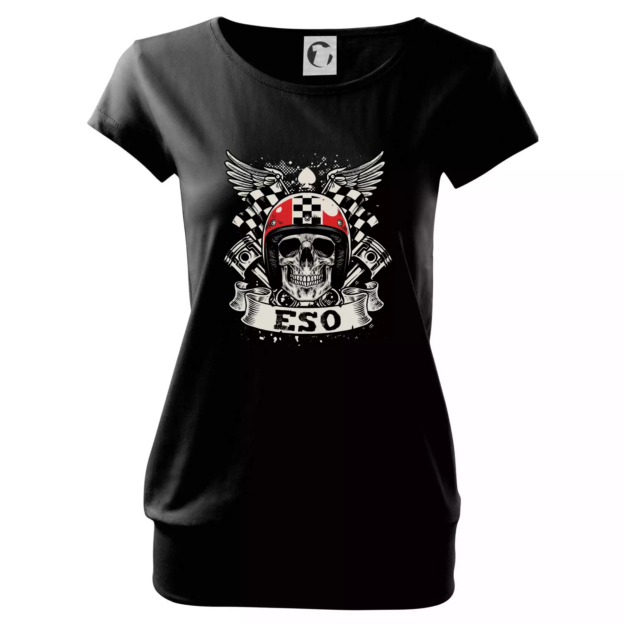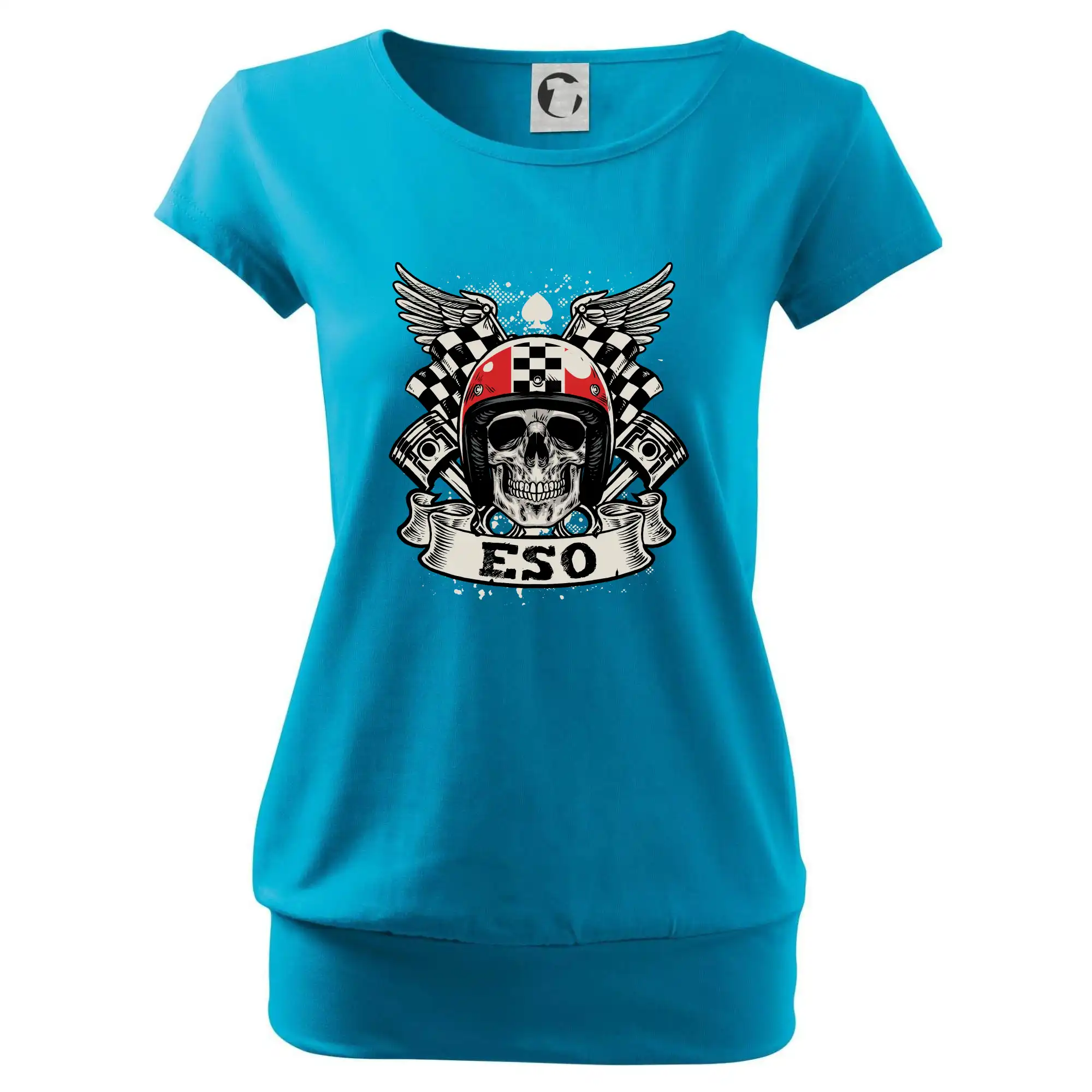 Trendové dámske tričko s veľmi krátkym rukávom, voľnejšieho strihu, v dolnom kraji všité do širokého lemu. Okrúhly priekrčník s úzkym lemom zo zhodného materiálu.