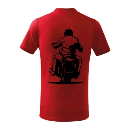Detské tričko strednej gramáže s bočnými švami. Úzky priekrčník s prídavkom 5% elastanu. Vnútorná časť zadného priekrčníka začistená tkanou páskou. Spevnený ramenný šev.