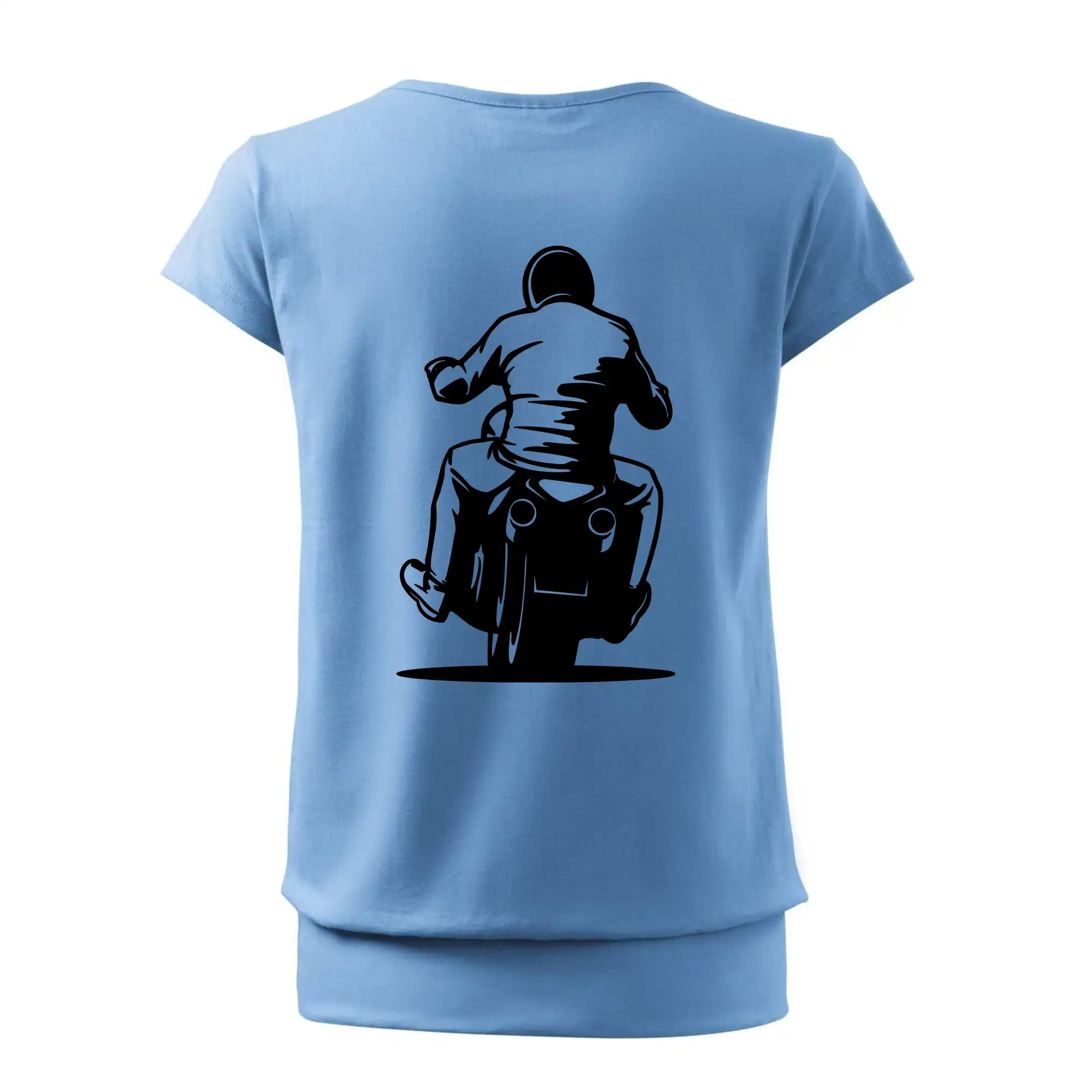 Trendové dámske tričko s veľmi krátkym rukávom, voľnejšieho strihu, v dolnom kraji všité do širokého lemu. Okrúhly priekrčník s úzkym lemom zo zhodného materiálu.