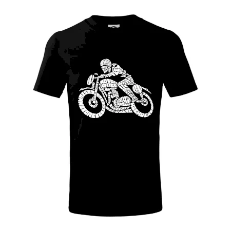 Detské tričko strednej gramáže s bočnými švami. Úzky priekrčník s prídavkom 5% elastanu. Vnútorná časť zadného priekrčníka začistená tkanou páskou. Spevnený ramenný šev.