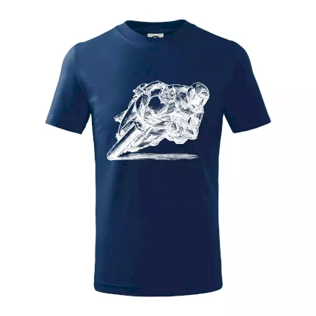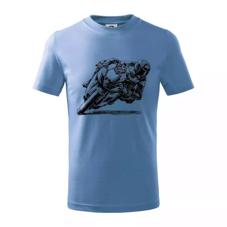 Detské tričko strednej gramáže s bočnými švami. Úzky priekrčník s prídavkom 5% elastanu. Vnútorná časť zadného priekrčníka začistená tkanou páskou. Spevnený ramenný šev.