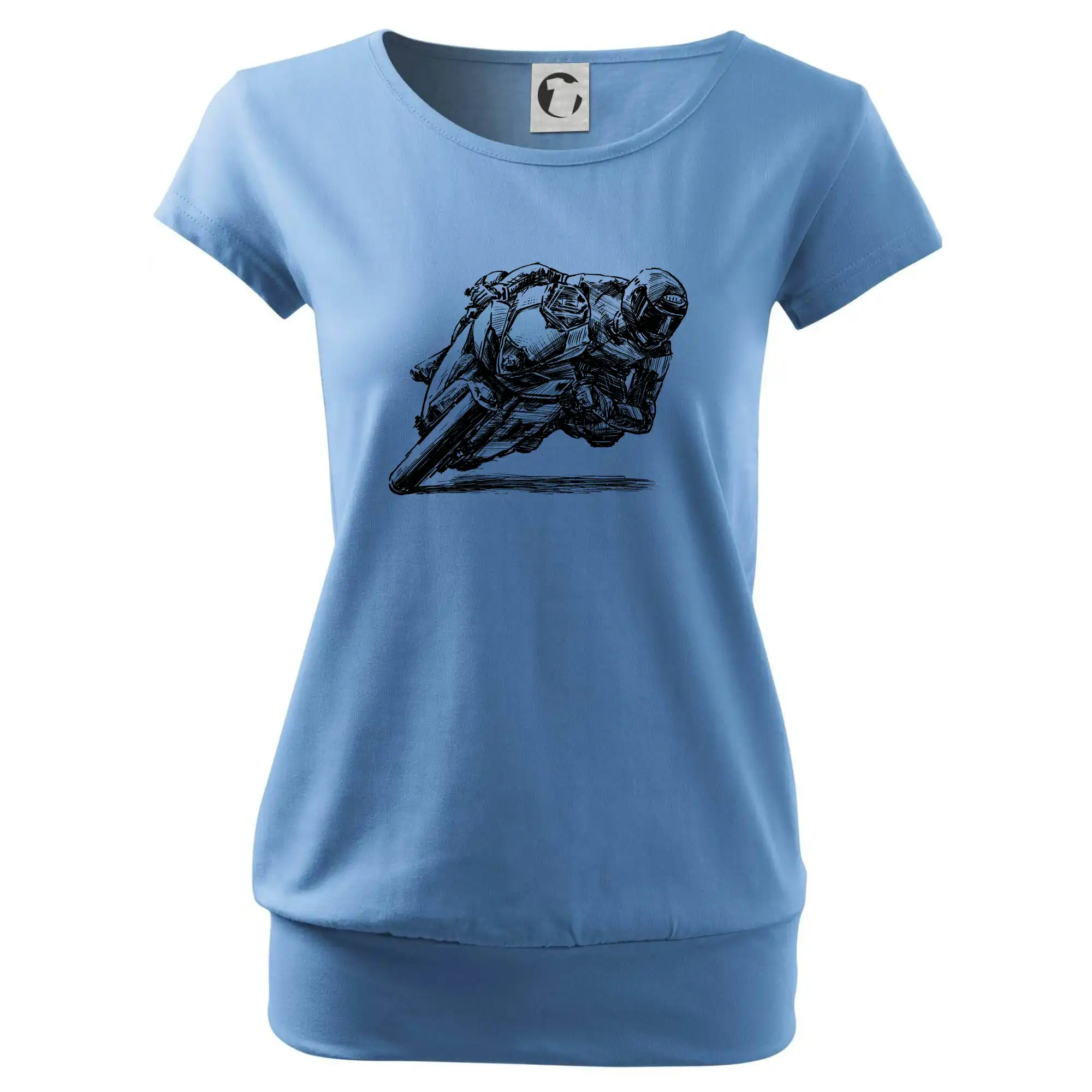 Trendové dámske tričko s veľmi krátkym rukávom, voľnejšieho strihu, v dolnom kraji všité do širokého lemu. Okrúhly priekrčník s úzkym lemom zo zhodného materiálu.