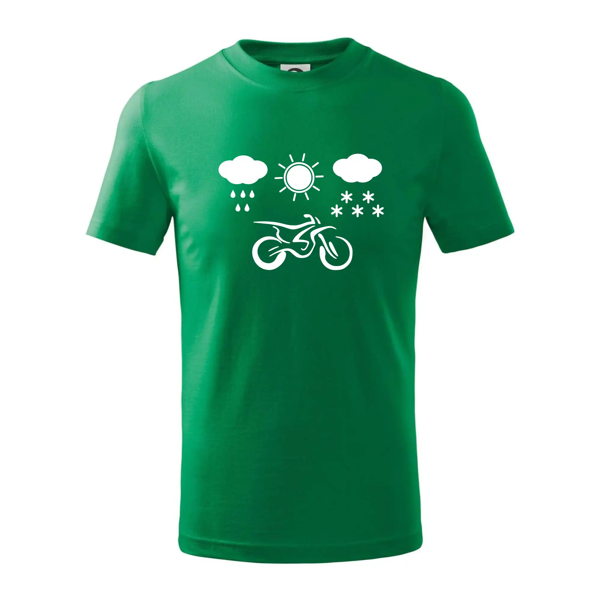 Detské tričko strednej gramáže s bočnými švami. Úzky priekrčník s prídavkom 5% elastanu. Vnútorná časť zadného priekrčníka začistená tkanou páskou. Spevnený ramenný šev.