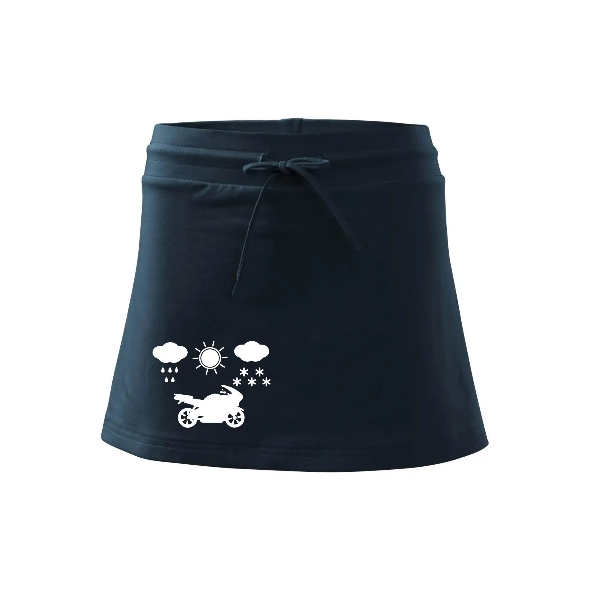 Dámska kraťasová sukňa MALFINI Two in One 604 je perfektnou kombináciou sukne a šortiek, ideálna na šport, voľný čas alebo ležérne nosenie. Vďaka prídavku elastanu si sukňa zachováva tvar a ponúka pohodlie pri pohybe. Krátky strih do tvaru „A“ a široký elastický pás so sťahovacou šnúrkou zabezpečujú voľnosť a prispôsobenie.