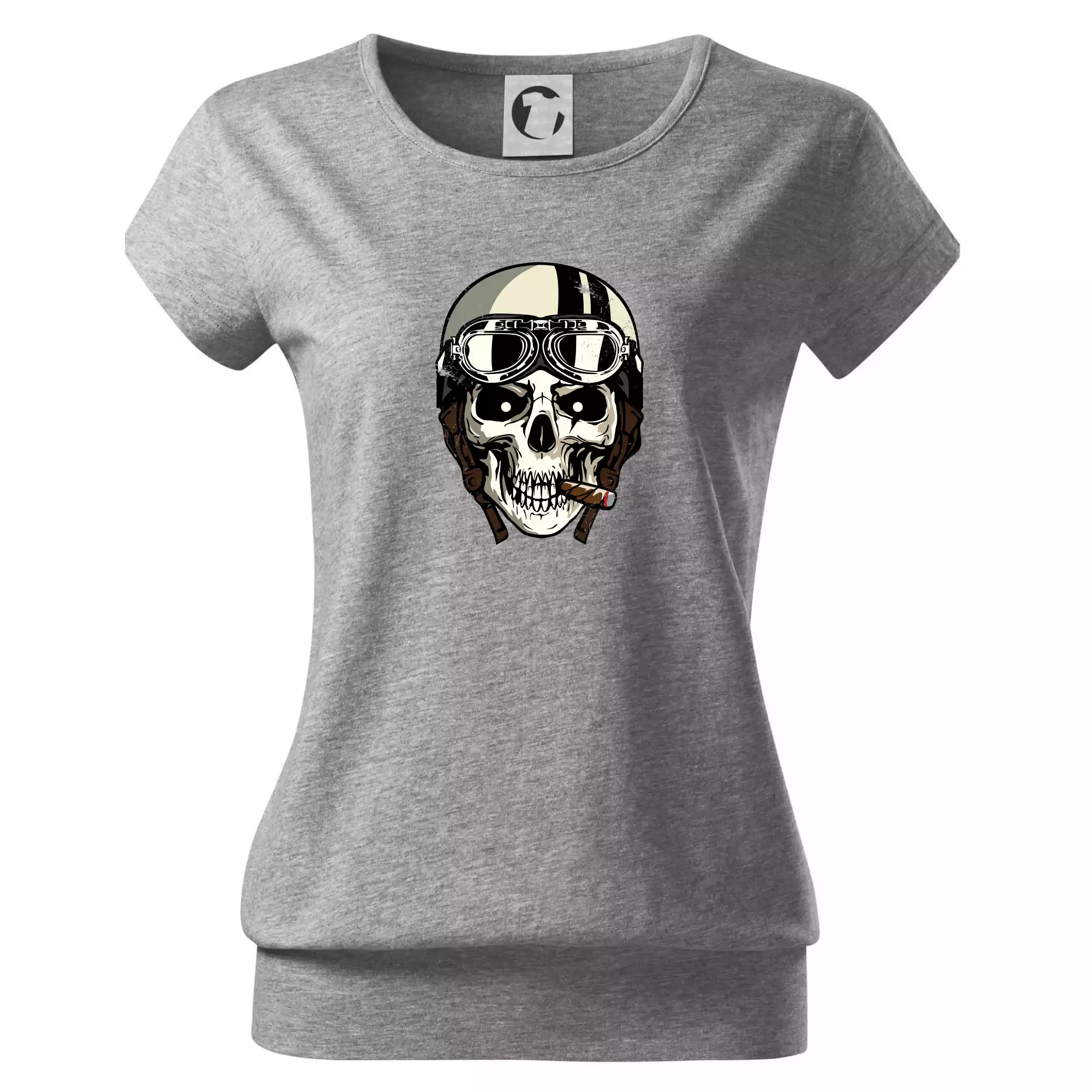Trendové dámske tričko s veľmi krátkym rukávom, voľnejšieho strihu, v dolnom kraji všité do širokého lemu. Okrúhly priekrčník s úzkym lemom zo zhodného materiálu.