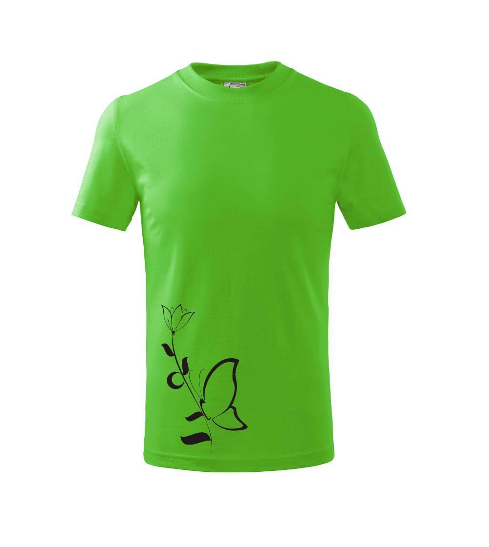 Detské tričko strednej gramáže s bočnými švami. Úzky priekrčník s prídavkom 5% elastanu. Vnútorná časť zadného priekrčníka začistená tkanou páskou. Spevnený ramenný šev.