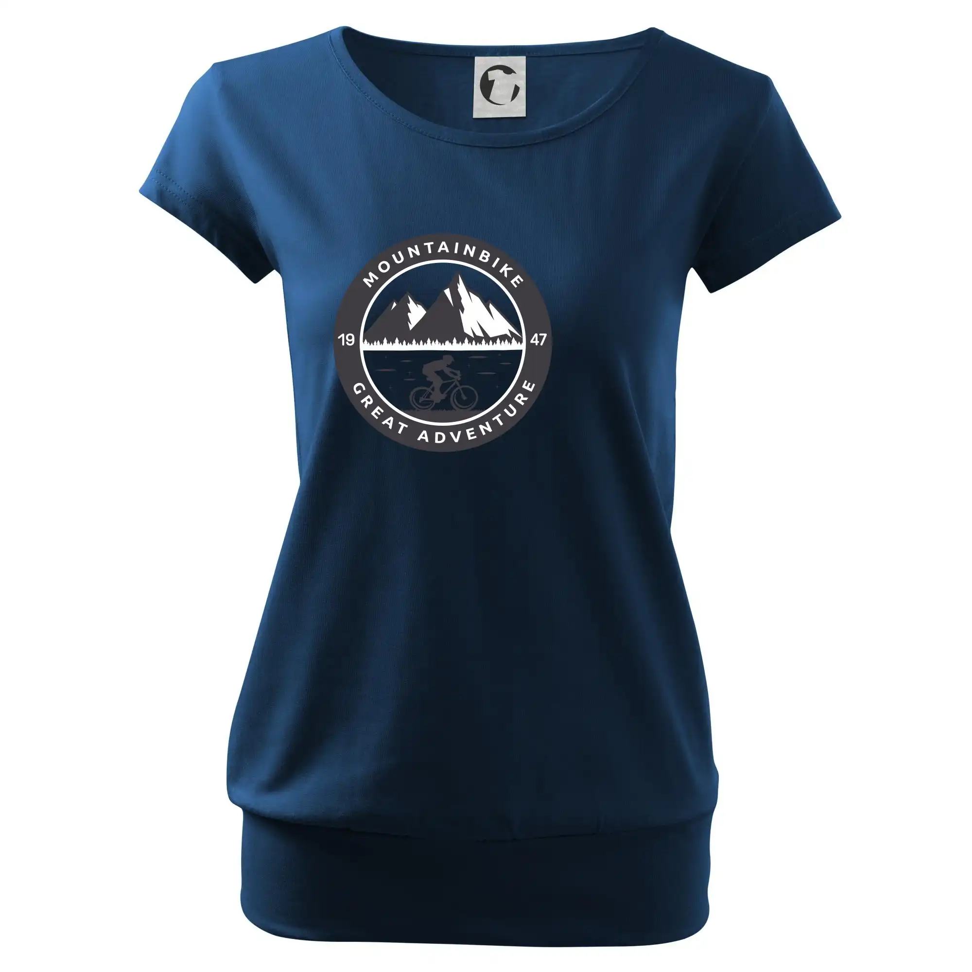 Trendové dámske tričko s veľmi krátkym rukávom, voľnejšieho strihu, v dolnom kraji všité do širokého lemu. Okrúhly priekrčník s úzkym lemom zo zhodného materiálu.