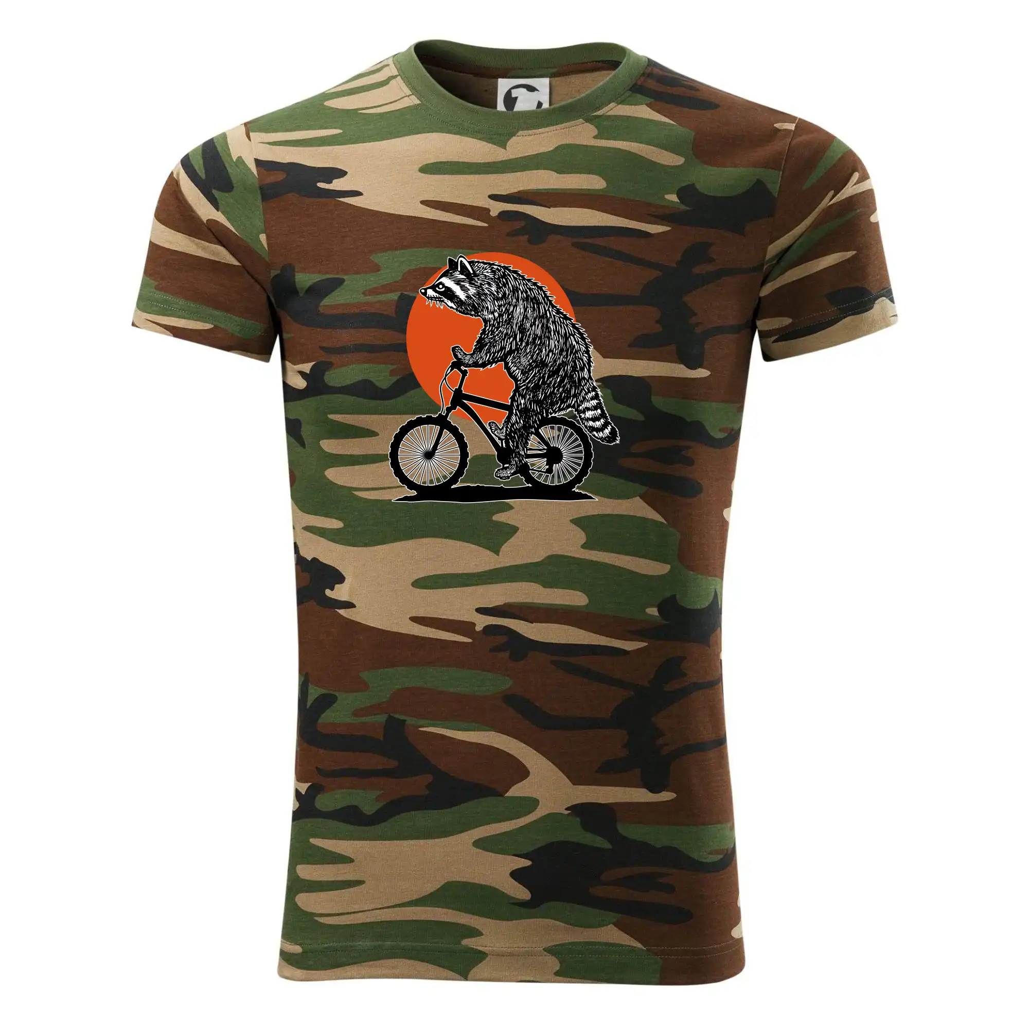 Tričko strednej gramáže vo farbách camouflage. Strih s bočnými švami. Lem priekrčníku z rebrového úpletu s prídavkom 5% elastanu. Vnútorná časť zadného priekrčníka začistená páskou vo farbe camouflage.